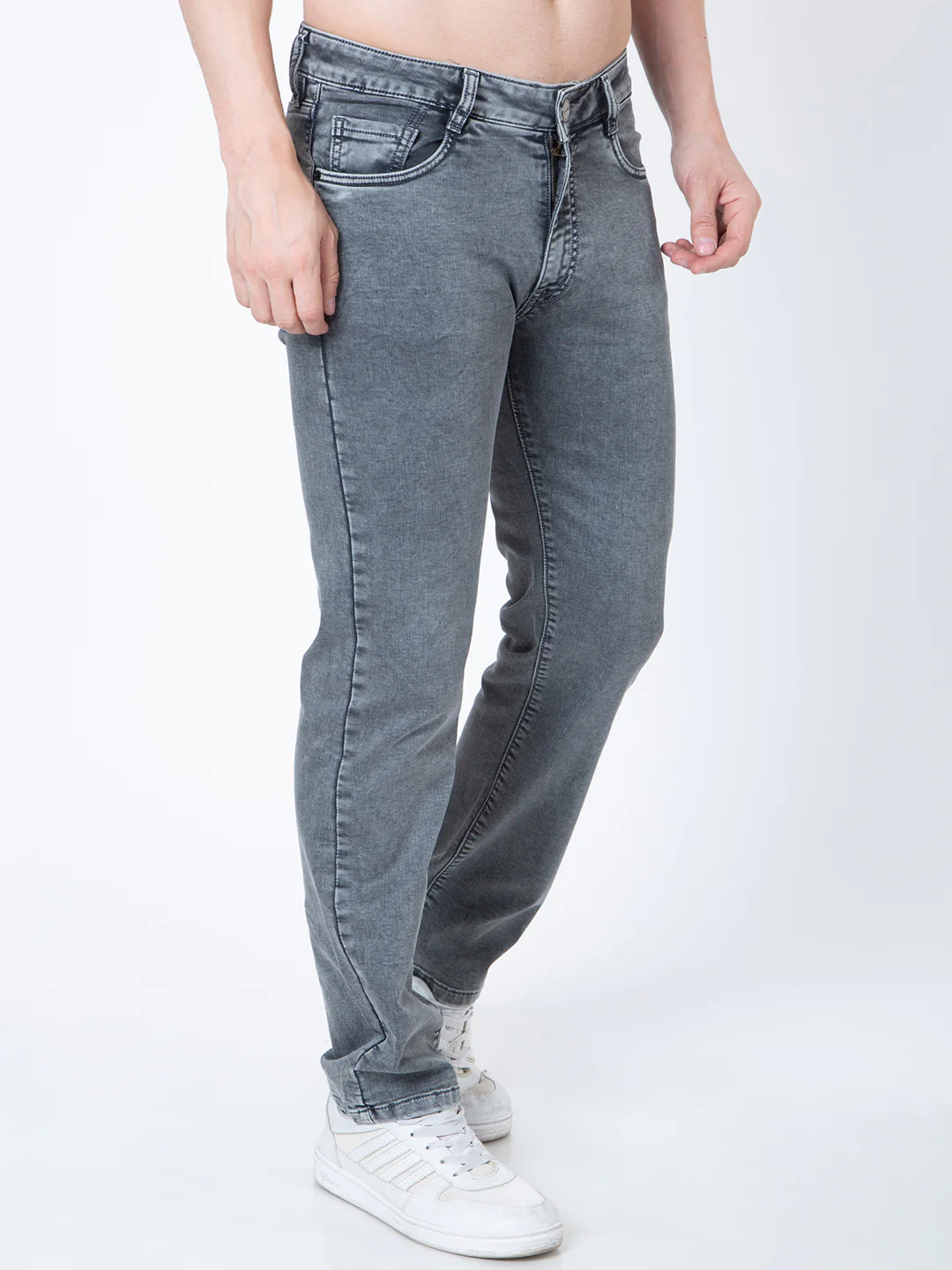 Men Light Grey Straight Fit Denim