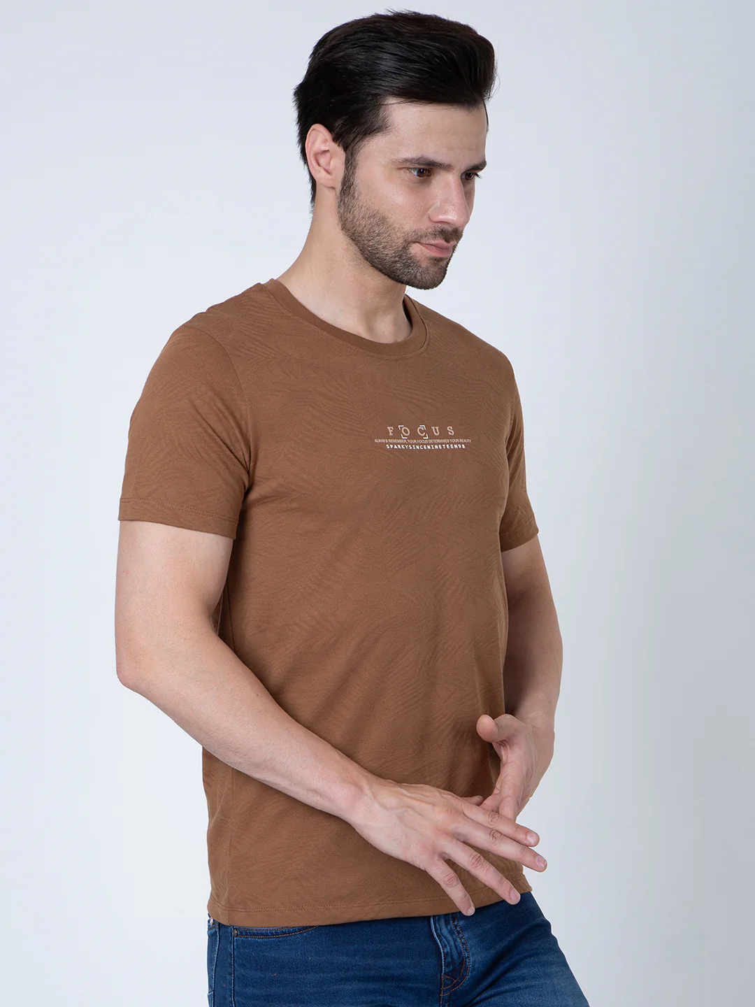 Men Jaquard Brown T-Shirt