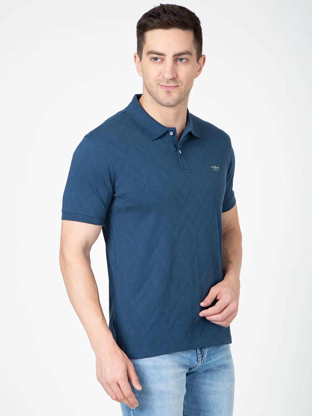 Men Blue Polo Jacquard T-Shirt
